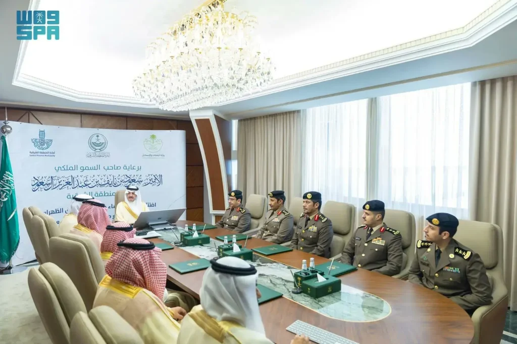 السعودية | دشّن صاحب السمو الملكي الأمير سعود بن نايف بن عبدالعزيز أمير المنطقة الشرقية، في مكتبه بالإمارة اليوم جسر تقاطع طريق الظهران-الجبيل مع طريق الملك عبدالعزيز بمدينة الدمام، بحضور معالي أمين المنطقة الشرقية المهندس فهد بن محمد الجبير، ومدير مرور المنطقة الشرقية العميد الدكتور عبداللطيف بن محمد العبيدالله، وذلك في إطار دعم مشاريع البنية التحتية وتعزيز كفاءة شبكة الطرق بالمنطقة.