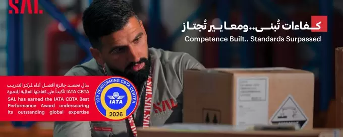 السعودية | حصلت SAL Logistics Services، الشركة الوطنية الرائدة في مناولة الشحن والخدمات اللوجستية وإدارة سلاسل الإمداد في المملكة، على جائزة أفضل أداء لمراكز التدريب وفق منهجية الكفاءة (CBTA) لعام 2026 من International Air Transport Association.