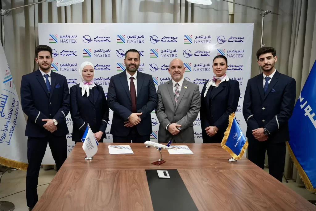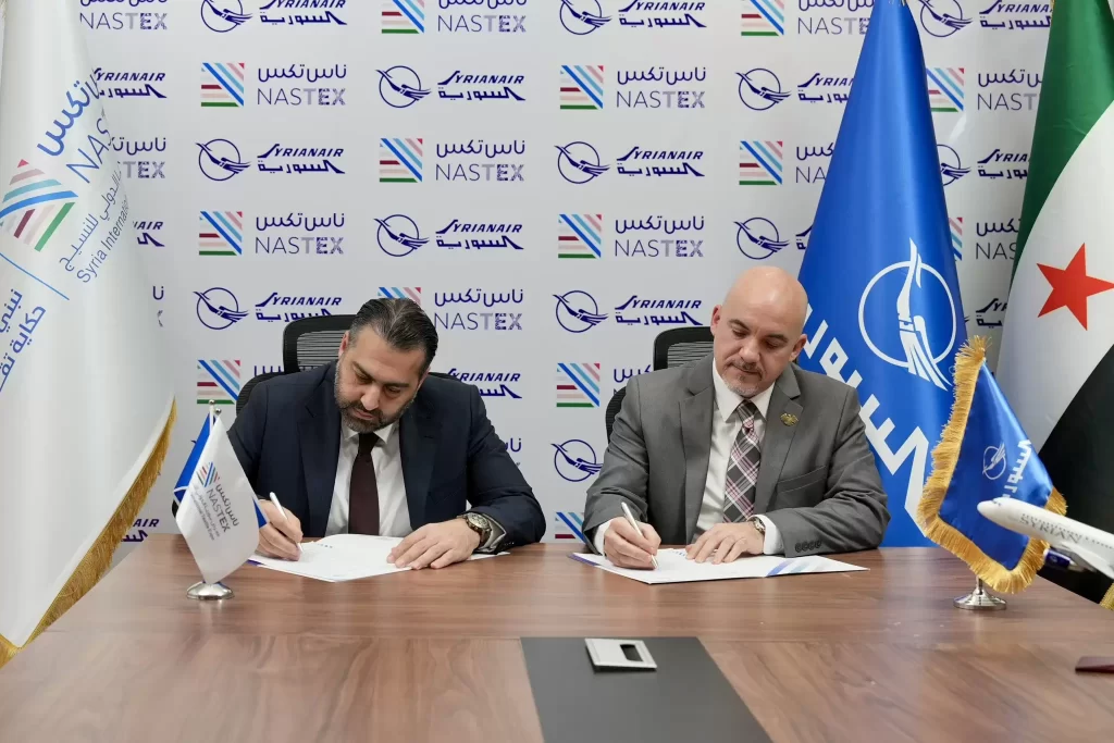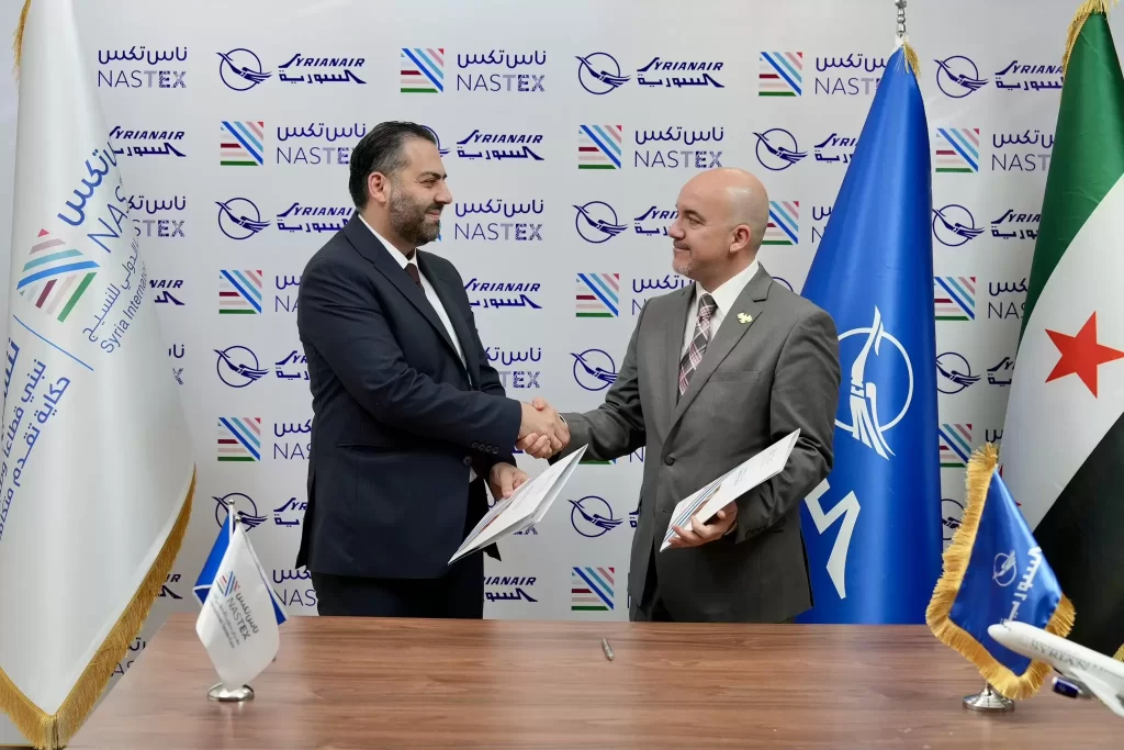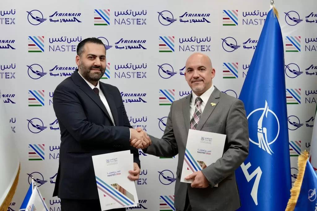 سوريا | وقّعت الشركة السورية القابضة للطيران في دمشق اتفاقية تعاون مع إدارة معرض ناس تكس، لتكون الناقل الرسمي لمعرض ناس تكس 2026، أكبر معرض دولي للنسيج في الشرق الأوسط، المقرر إقامته في دمشق خلال الفترة من 1 إلى 4 نيسان 2026.