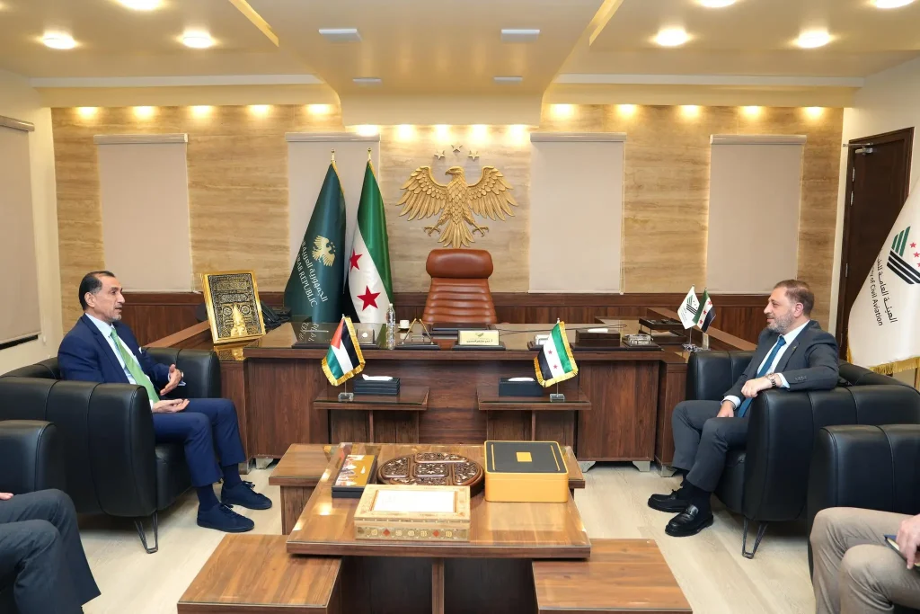 سوريا | اجتمع السيد عمر الحصري، رئيس الهيئة العامة للطيران المدني والنقل الجوي، مع سعادة السيد سفيان القضاة، سفير المملكة الأردنية الهاشمية لدى الجمهورية العربية السورية.