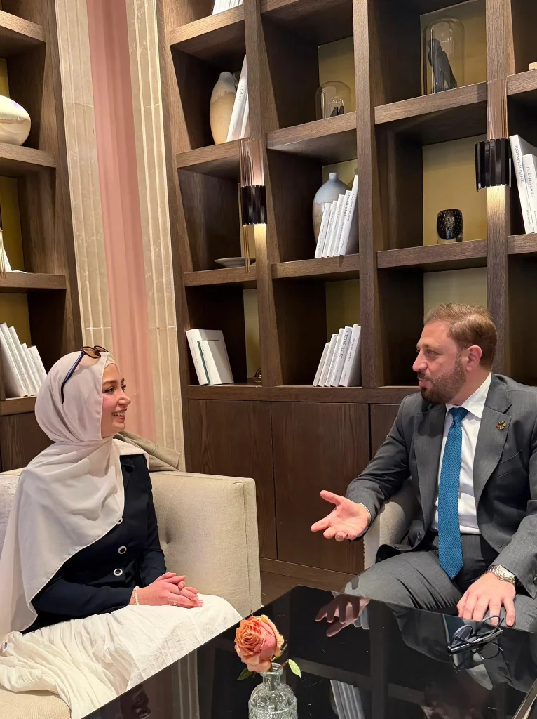 التقى رئيس الهيئة العامة للطيران المدني السوري عمر الحصري في #لندن بالكابتن مايا غزال، أول طيارة سورية لاجئة تعمل ضمن طواقم شركة TUI Airways، اللقاء جاء على هامش زيارة الرئيس أحمد الشرع إلى المملكة المتحدة.