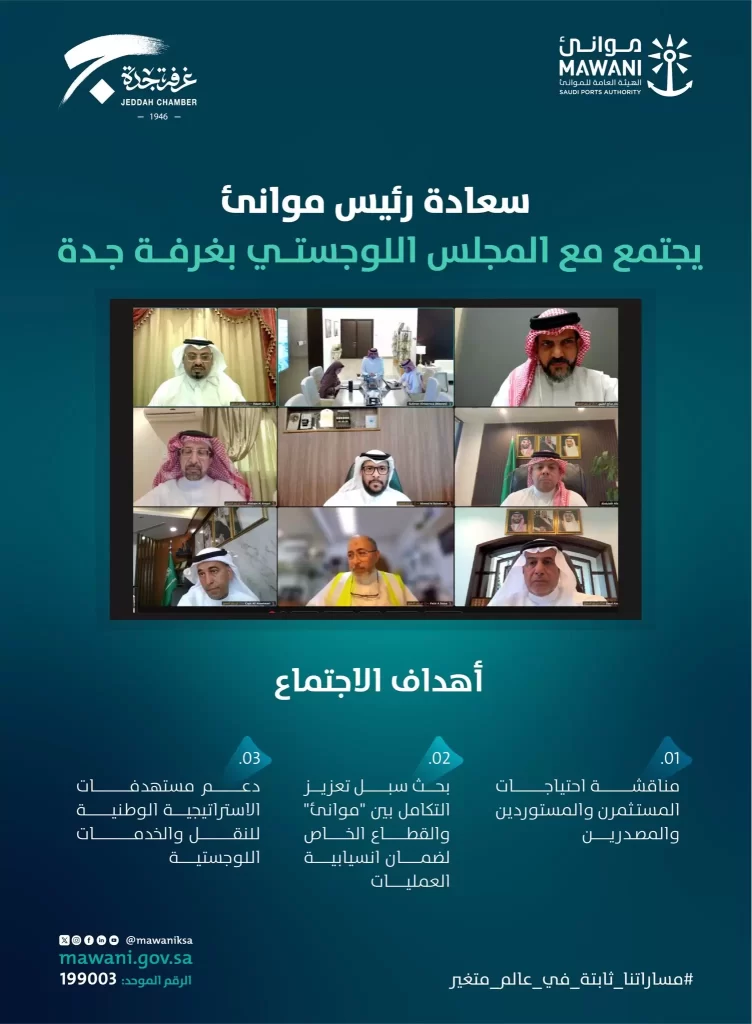 ويأتي الاجتماع في إطار دعم تنافسية موانئ المملكة، من خلال تطوير الشراكات وتلبية احتياجات المستوردين والمصدرين والمستثمرين في القطاع البحري، بما يسهم في رفع كفاءة الخدمات اللوجستية وتحسين بيئة الأعمال.