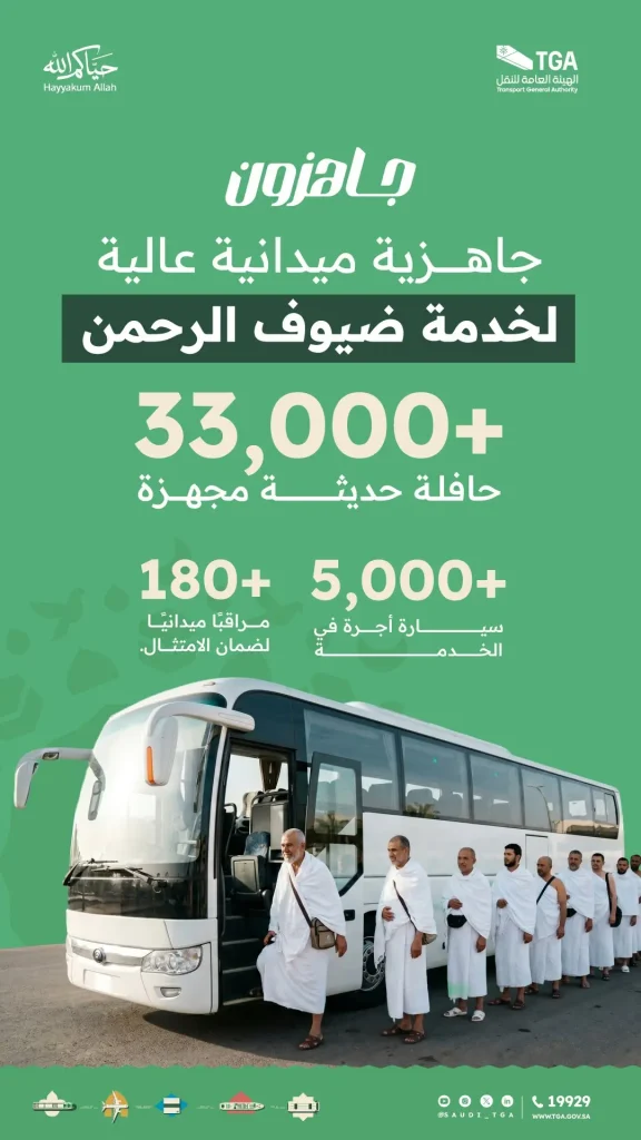 السعودية | كشفت الهيئة العامة للنقل (TGA) عن خطتها التشغيلية والميدانية المتكاملة لخدمة ضيوف الرحمن خلال موسم الحج، مؤكدةً تسخير كافة الطاقات والإمكانيات لضمان رحلة تنقل آمنة وميسرة للحجاج عبر مختلف المنافذ والمسارات.