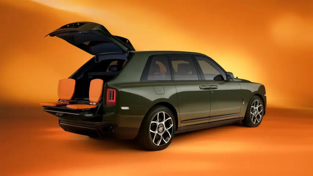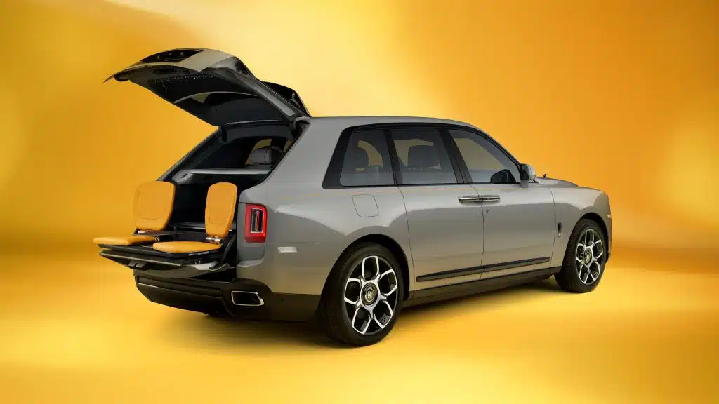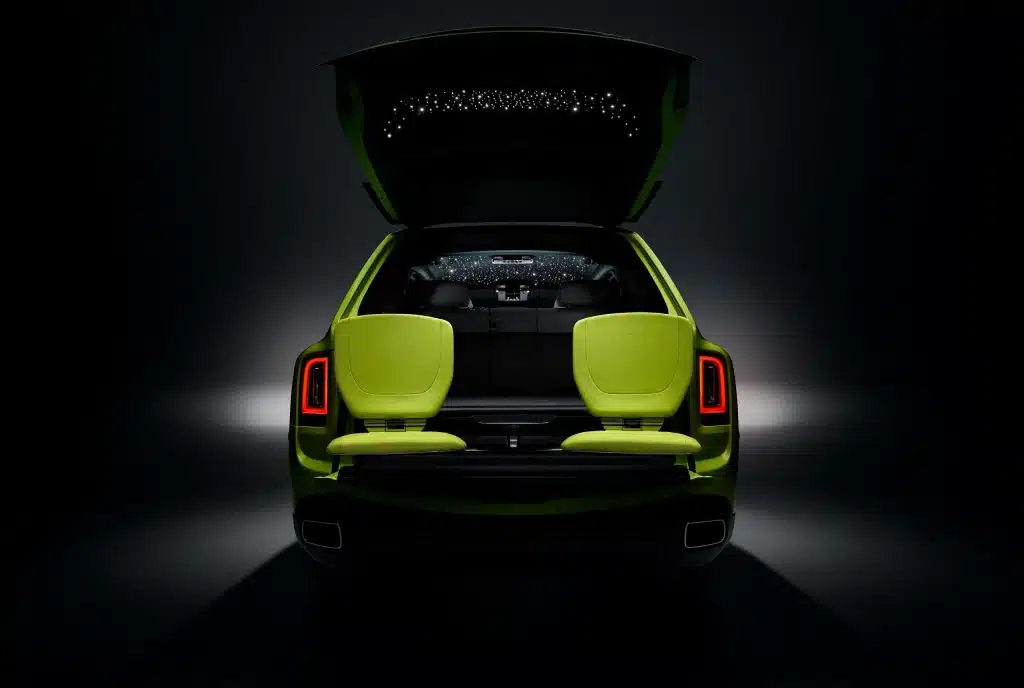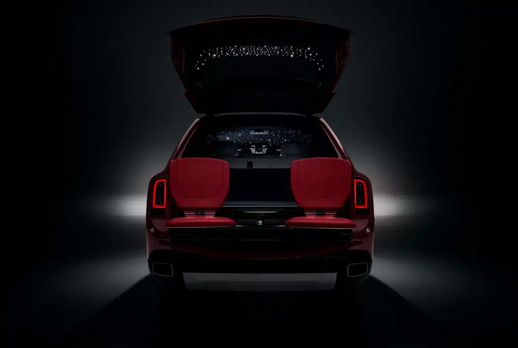 علاوة على ذلك، ابتكر المصمّمون باباً خلفياً جديداً بالكامل مرصّعاً بالنجوم لهذه المجموعة خصيصاً، وهي ميزة استثنائية تبسُط مشهد السماء المتلألئة بالنجوم في بطانة السقف إلى ما وراء المقصورة الداخلية للسيارة. تستغرق ميزة بيسبوك هذه أكثر من 22 ساعة عمل، وتشمل 192 نجمةً مضيئة بطريقة خافتة ومدمجة في الجلد المخرّم. يُستَكمل الباب الخلفي المرصّع بالنجوم بمقصورة المشاهدة، ما يؤمّن الأجواء المثالية للاستمتاع بجمال السماء المرصّعة بالنجوم في أي مكان.