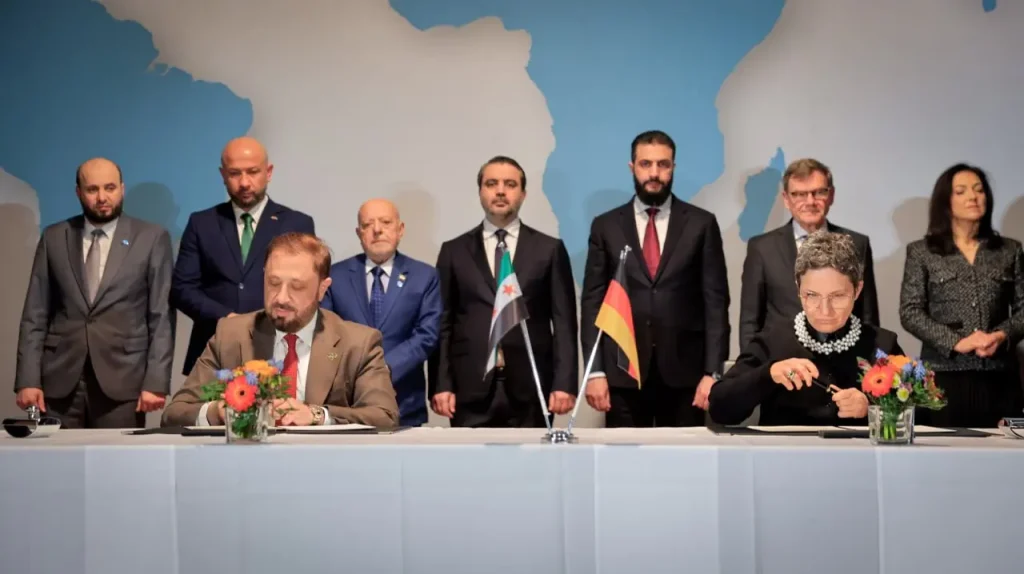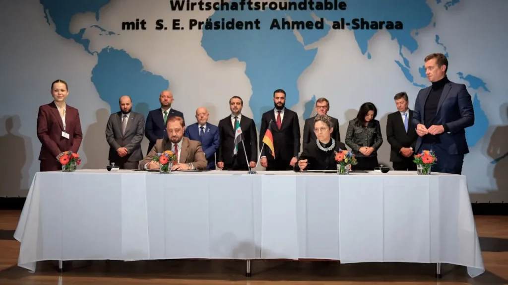 سوريا | وقّعت الجمهورية العربية السورية اتفاقية تعاون في مجال النقل الجوي مع جمهورية ألمانيا الاتحادية في العاصمة الألمانية برلين، وذلك بحضور فخامة الرئيس السوري أحمد الشرع وعدد من السادة الوزراء.
