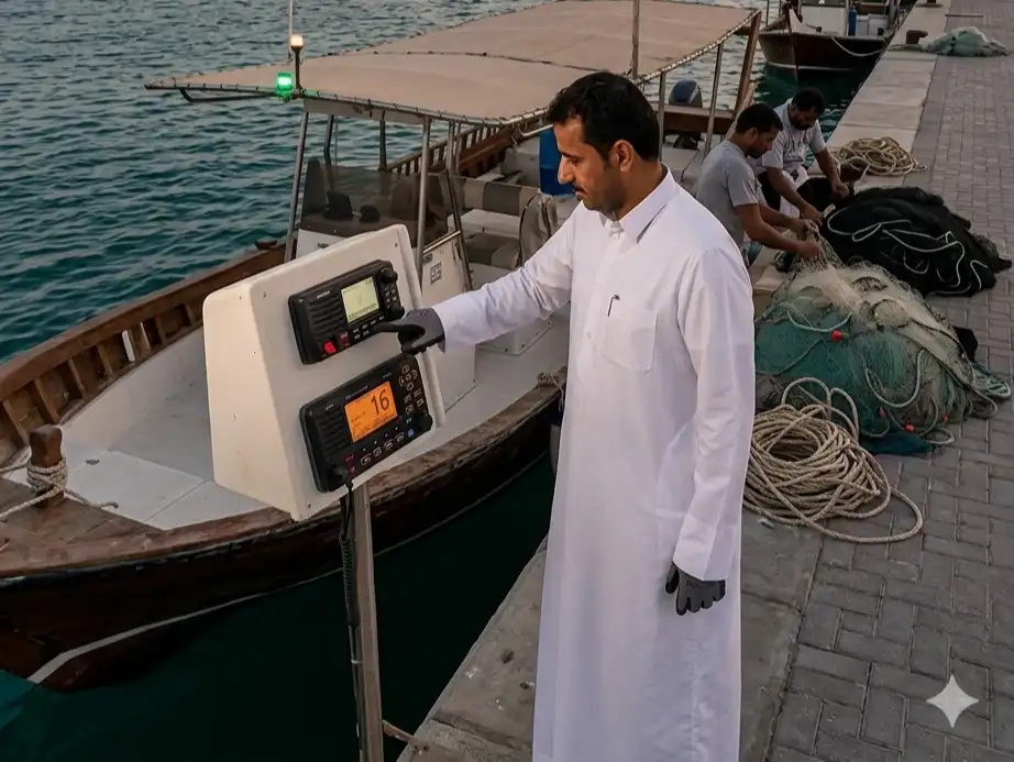 الاتصال اللاسلكي (VHF – Channel 16): ضرورة تشغيل جهاز الاتصال طوال فترة التواجد في البحر.