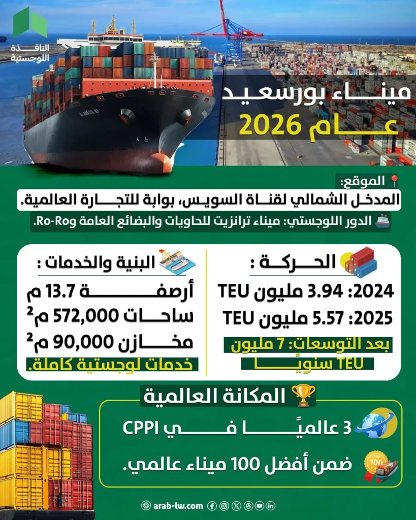 مصر | يعتبر ميناء بورسعيد (وبالأخص ميناء شرق بورسعيد) “عملاق الترانزيت” في مصر والمنطقة، حيث يمثل نقطة ارتكاز رئيسية عند المدخل الشمالي لقناة السويس.