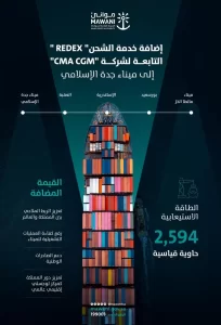 السعودية | أعلنت الهيئة العامة للموانئ “موانئ” عن إضافة شركة “CMA CGM” خدمة الشحن الجديدة “REDEX” إلى...