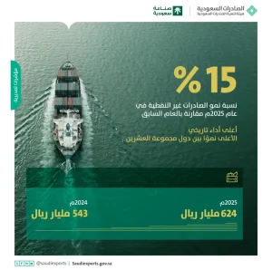 السعودية | سجّلت الصادرات غير النفطية للمملكة أداءً تاريخيًا خلال عام 2025، في مؤشر واضح على تسارع...