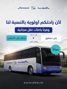 سوريا | أعلنت الخطوط الجوية السورية توفير باصات نقل مجانية للمسافرين المقيمين في دمشق والذين يحملون بطاقات...