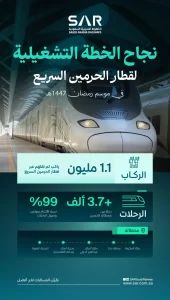 السعودية | أعلنت الخطوط الحديدية السعودية “سار” عن نجاح خطتها التشغيلية لقطار الحرمين السريع خلال شهر رمضان...